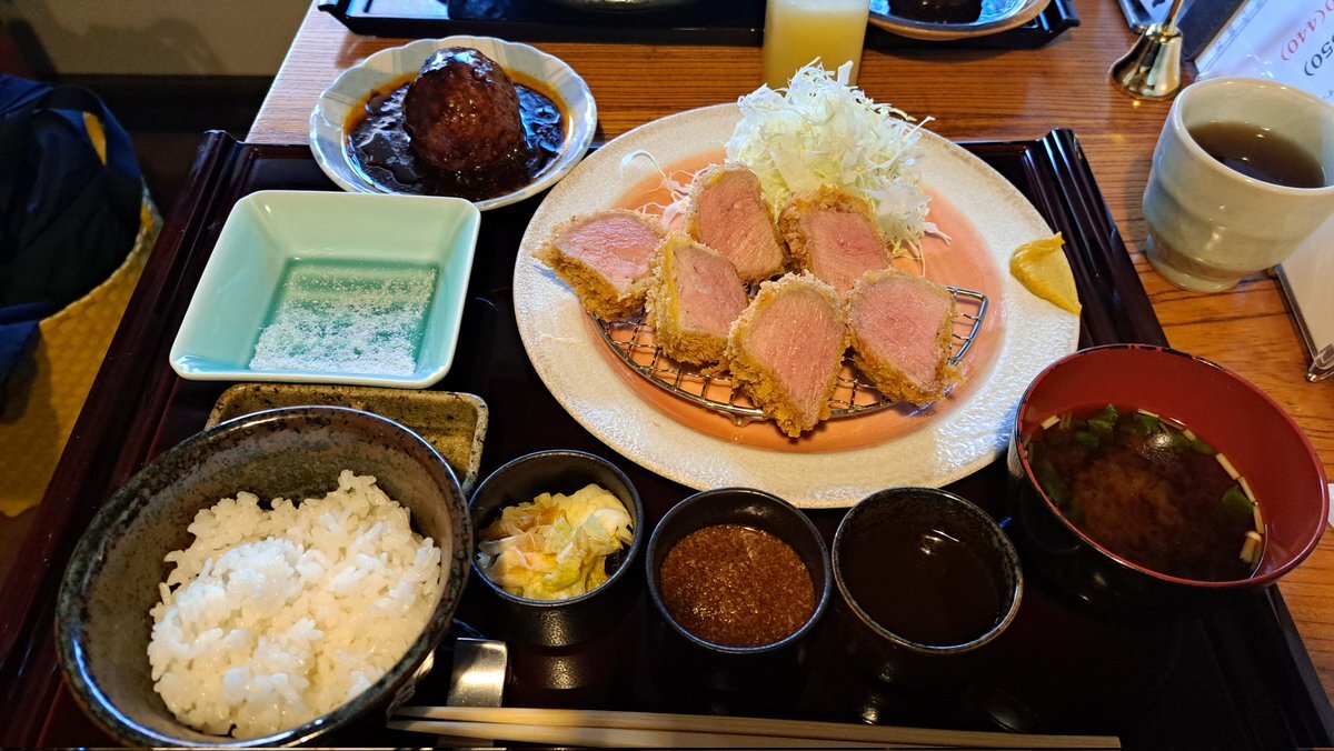 昨日の美味しいものは 徳川美術館近くのとんかつ屋さんへ 以前、娘と一緒に行った時とは違うメニューで ヒレカツと煮込みハンバーグ 衣サクサクお肉はしっかり厚みがあってジューシー pic.x.com/OXPogYFOo1