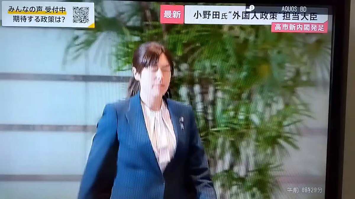 外国人政策担当大臣の小野田紀美。 取材しようとすると「大丈夫でーす。すいませんNGで」と逃げる。高市早苗から取材はNGと言われているのか。 (画像 news23)