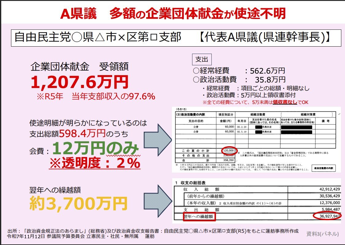 返信先:@MGRaywaCarterこれテレビたまたま見てたんですが、このパネルで説明してたんですけど 経常経費は事務所家賃とか秘書経費で、使途は明確 政治活動費の12万も明細があり、政治活動費の公表対象外って23万なんですよ つまり透明度が2%じゃなくて、98%の使途は明確だという説明を蓮舫がしてるんですよね。