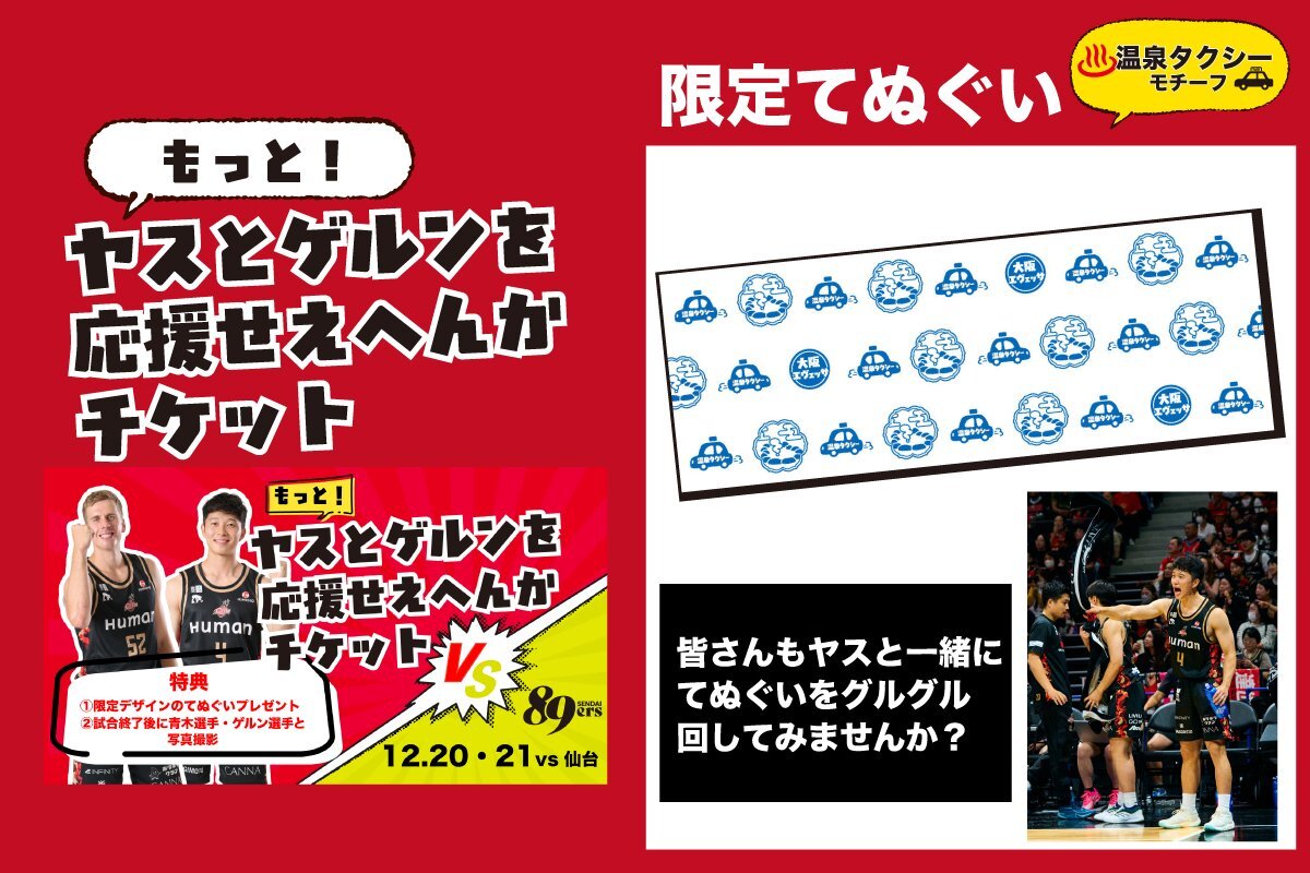 12月企画チケット 特典デザイン決定✨ ◉もっと!ヤスとゲルンを応援せえへんかチケット 新体制発表会でのゲルン選手の一言から話題となった“温泉タクシー♨️”をモチーフにした限定てぬぐい🚕 pic.x.com/oj4ZnOs9ML x.com/osakaevessa/st…