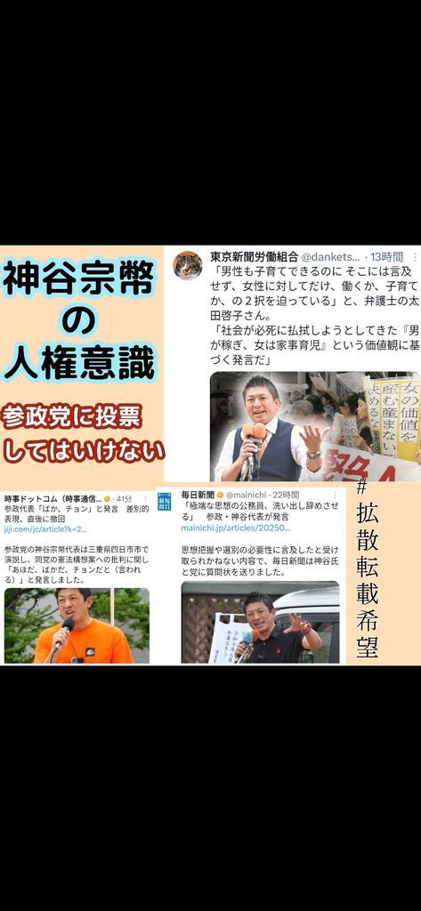 「サンセイ党・カミヤ」 →「日本人は減っても良い」 「日本人ファースト選挙の間だけの」キャッチコピー! 「サンセイ党」=「日本人の敵」 日本人の皆様! まだ騙されているのですか! x.com/EDdVbu1Doo4329…