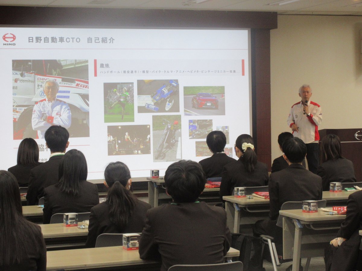 先日、本校の近くにある日野自動車株式会社のご厚意により、講演会・見学会を実施しました。CTO(最高技術責任者)の脇村様より、これまでの歩みや商用車の未来についてお話を伺い、その後、最新のトラックを見学させていただきました。生徒にとって貴重な機会となりました。ありがとうございました! pic.x.com/L4I8XTyoOs