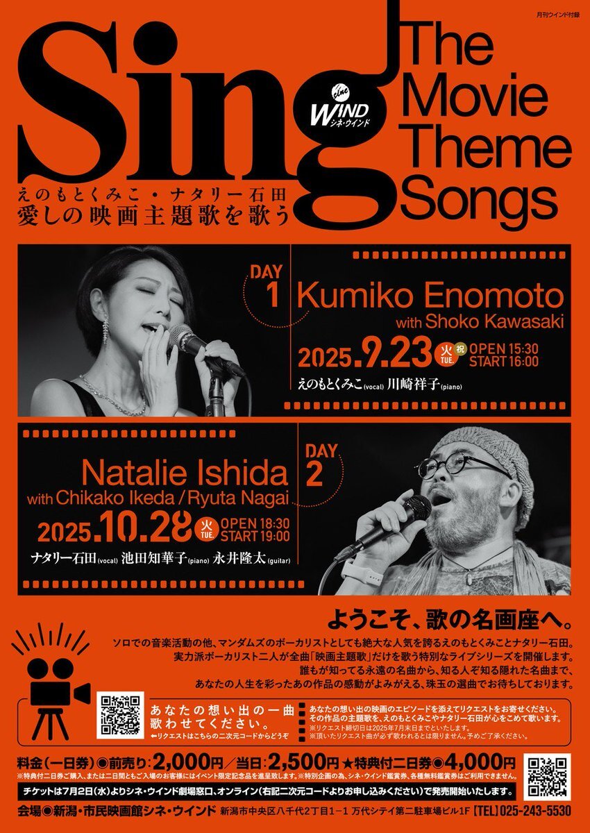 シネ・ウインド 映画主題歌ライブ。 いよいよ近づいて来ました。 お席の方も75%埋まりました。 くみこさんの時も当日飛び込みのお客様も多かったそうですので、ぜひ今のうちにチケット入手してね。 昨日リハでしたが、むふふ♡ええ感じになりそうよ! リクエスト曲も多くやりますぞ! pic.x.com/jGAftY53Qj