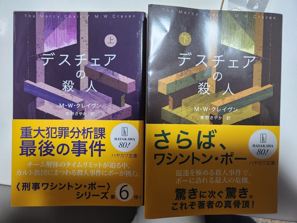 というわけで、ここのところで読んだ小説たち 「デスチェアの殺人」 ワシントン・ポーシリーズの新刊 この結末は予想できてなかったな 最後の事件ってあるけど、個人的にはまだ続いてほしい作品 pic.x.com/qpbj5QHeQX
