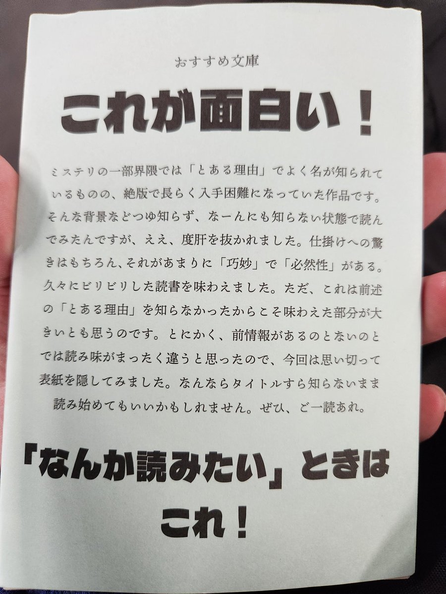 返信先:@fatima_ffs7777おはようです☀️ メルカトル鮎シリーズ 調べてみたら 短編はスルーしちゃってましたw 翼ある闇 メルカトル鮎最後の事件 夏と冬の奏鳴曲 痾 未読 鴉 なんですが 夏と冬の〜で 麻耶雄嵩先生が 天才過ぎて 何言ってんだか さっぱりわかりませんでした😆✨