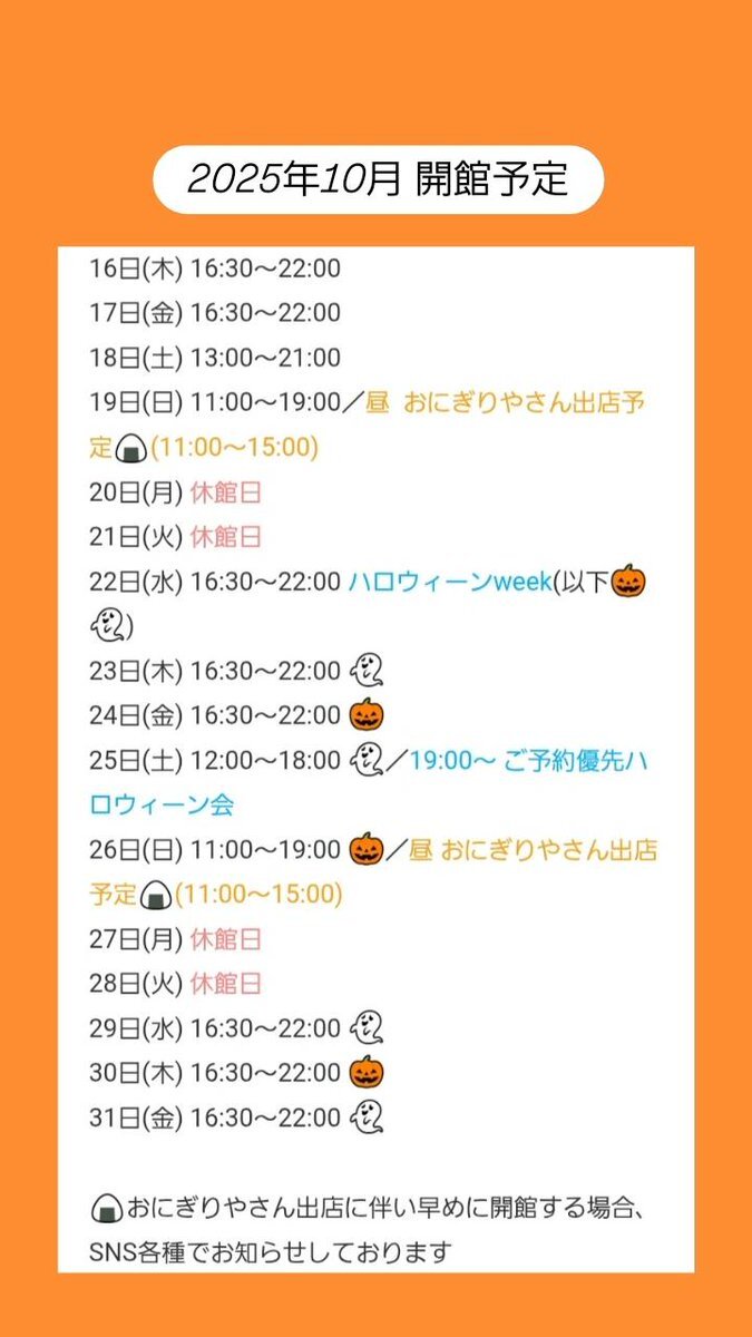 本日もありがとうございました🙏 10/11(土)〜10/13(月)は告知通り お休みいただきます。 ご注意下さいませ。