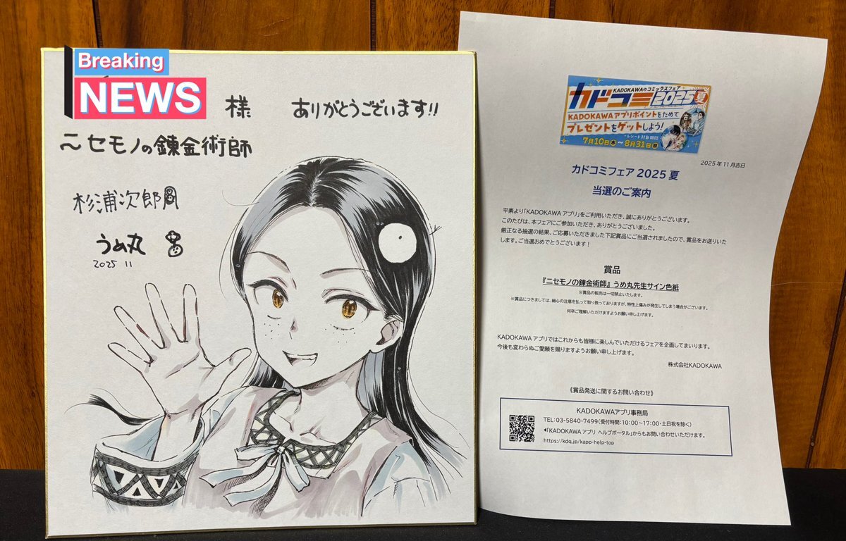 オワァァァー!!!!! うめ丸先生!杉浦先生のサインまで! pixivの時から好きだったのでめちゃくちゃ嬉しいですマジでノラさんかわいいありがとうございます😭😭🙏🏻🙏🏻 #カドコミ #ニセモノの錬金術師 pic.x.com/I81fLWoEqp