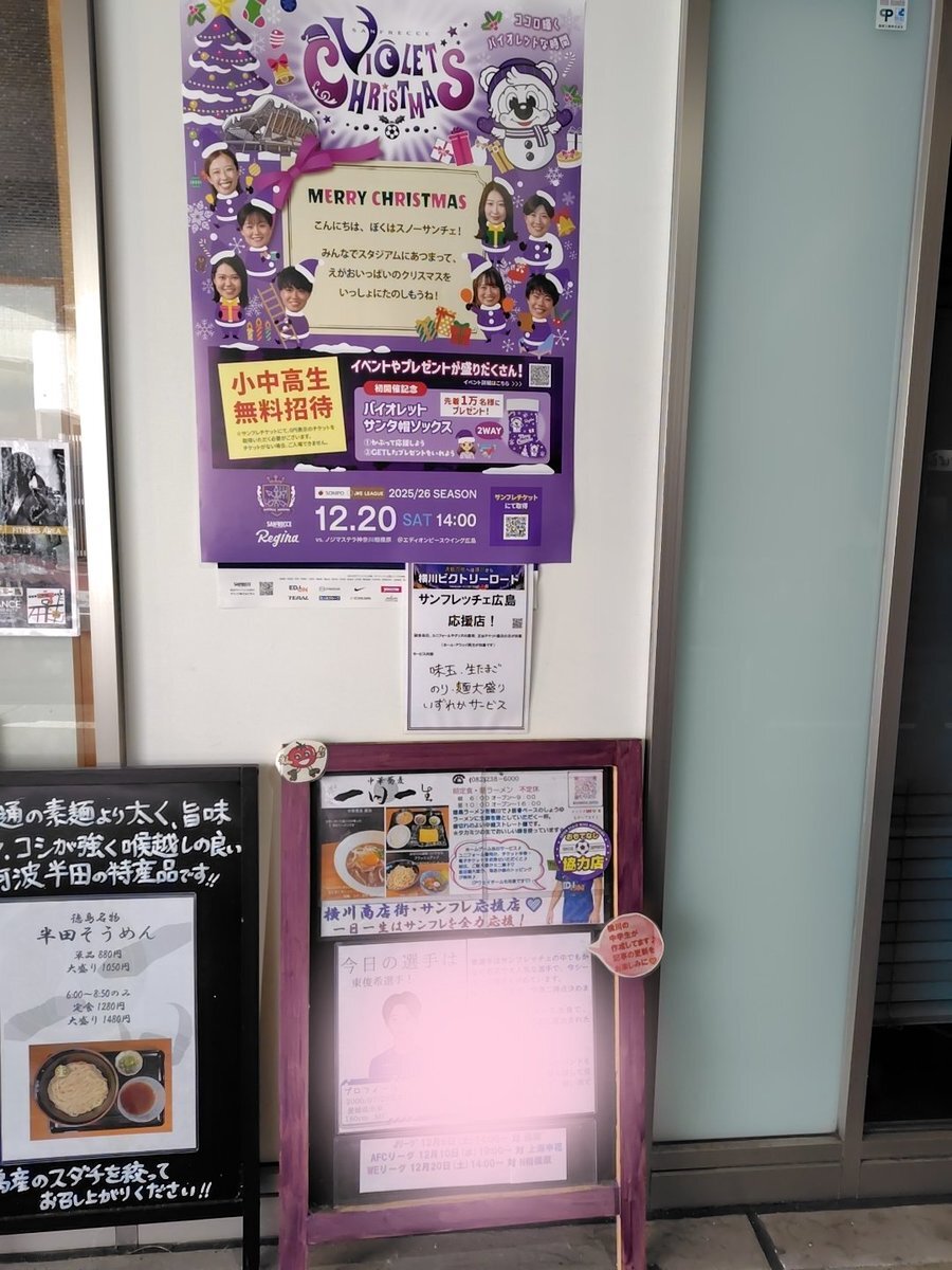 もう12月🎄😂💦 早いですね🥺 看板は #藤田七海 選手から、 #東俊希 選手に変わりました✨ 今年も #横川 の中学生が、 #サンフレッチェ広島#横川ビクトリーロード を盛り上げるため、似顔絵をやり切りました🙌💕 来年も楽しみです♥️ 12月の営業日も載せてます😄⤴️ 是非、お待ちしています🍜😆 pic.x.com/7BzAIa2TH9