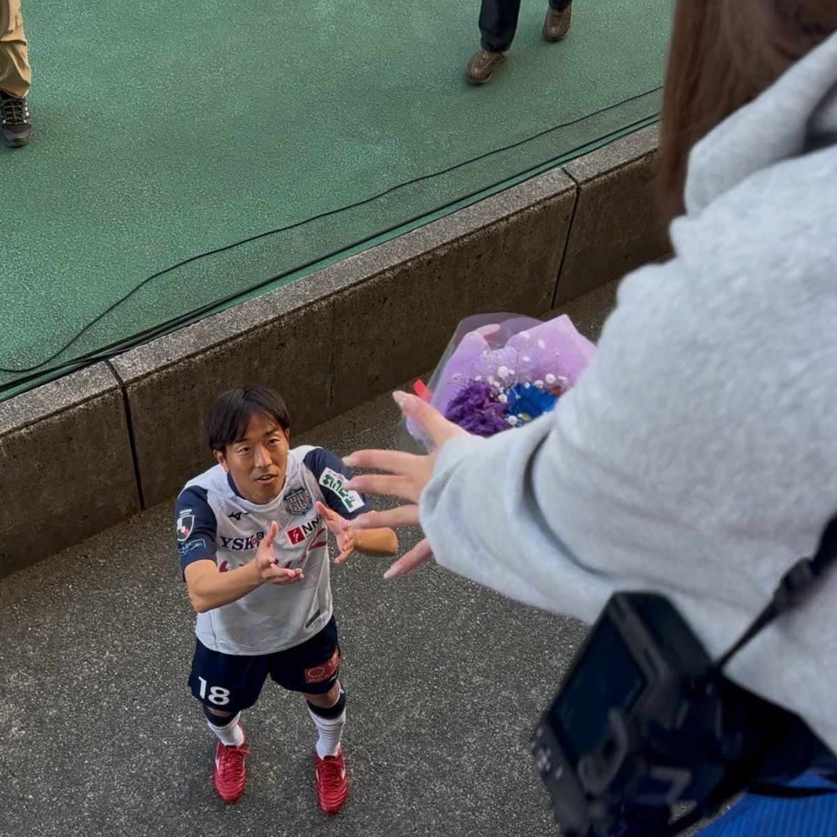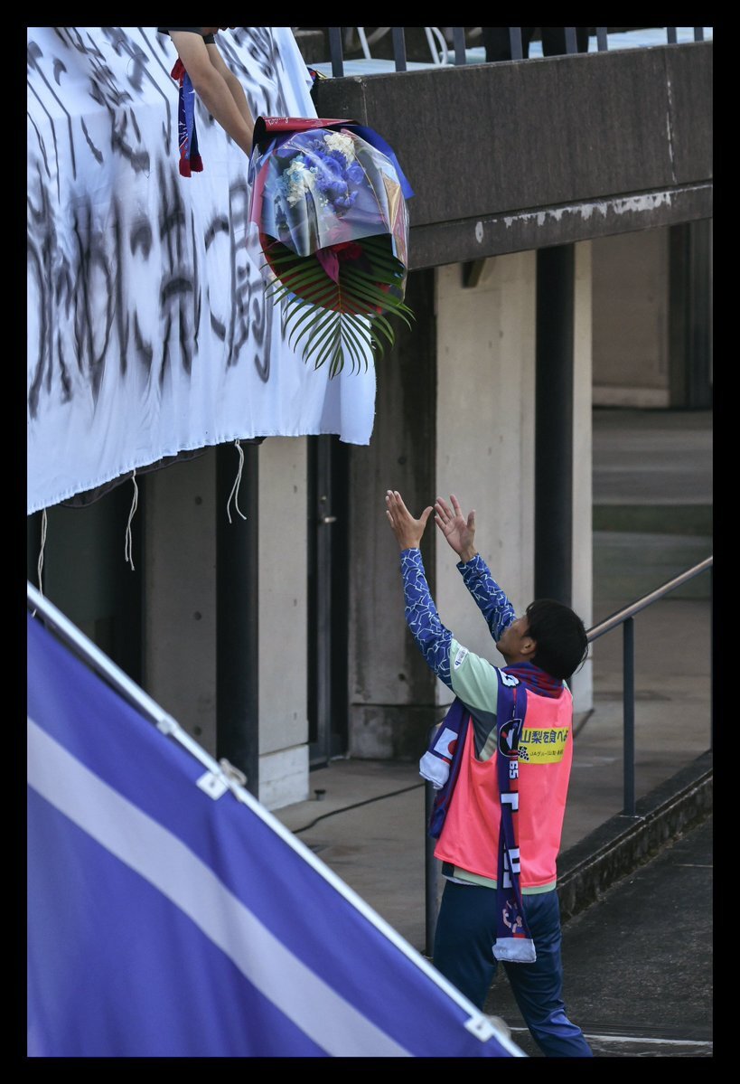 ゴール裏からの花束。かっしー本当に現役生活お疲れさまでした。 #vfk #ヴァンフォーレ甲府 #柏好文 選手 pic.x.com/29NesuoGQh