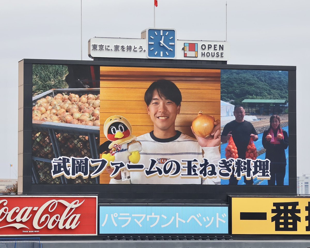 [2025.11.23.神宮球場] 武岡ファームのタマネギ料理対決 審査員なんて大丈夫? ちゃんと喋れる? って思ってたけど、 太る食べ物とかコメント言えてて 安心しました😮‍💨 #武岡龍世 #swallows pic.x.com/Nd3giCwwUD
