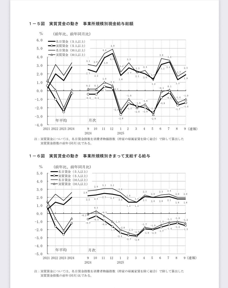 毎月勤労統計調査9月速報について。 永濱利廣氏 nikkei.com/article/DGXZQO… 新家義貴氏 dlri.co.jp/report/macro/5… 飯塚信夫先生 note.com/todobuono/n/n7… 某先生 professor.cocolog-nifty.com/blog/2025/11/p… 高原正之氏 x.com/m_takaharasan/…