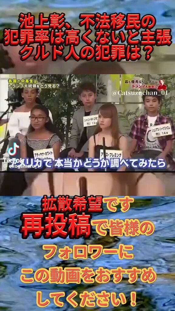 池上彰の番組ってこんなに偏向的報道してたんだ‼️💢 池上によると、不法移民の犯罪率は高くないらしいwwwww 池上さん、不法移民の時点で犯罪者ですよ😇 子供達もドン引きしてるし、全国放送でこれ流すの悪影響すぎる💢 以前は、なんとなく見てた番組だけど、こんな思想の持ち主だったんだこいつ💢