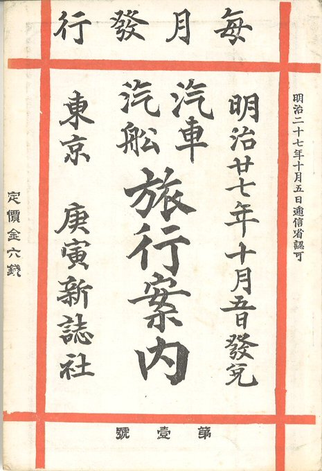 今日は、時刻表記念日。1894年(明治27)の今日、日本初の本格的な時刻表「汽車汽船旅行案内」が庚寅新誌社から出版。当時は、汽車の発車時刻や運賃だけでなく、沿線の案内や紀行文なども掲載されて情報誌の役割も。 三千里薬品3000ri.jp pic.x.com/PC2qbp7XYw