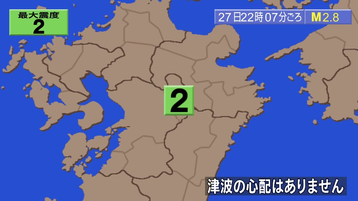 📢 地震情報 日時 : 11月27日(木) 22時7分頃 場所 : 熊本県 震源地 : 熊本県阿蘇地方 最大震度 : 2 震源の深さ : 10km マグニチュード : 2.8 市区町村の総人口 : 3万4196人 津波の心配はありません。 pic.x.com/6lTXuTdk7m