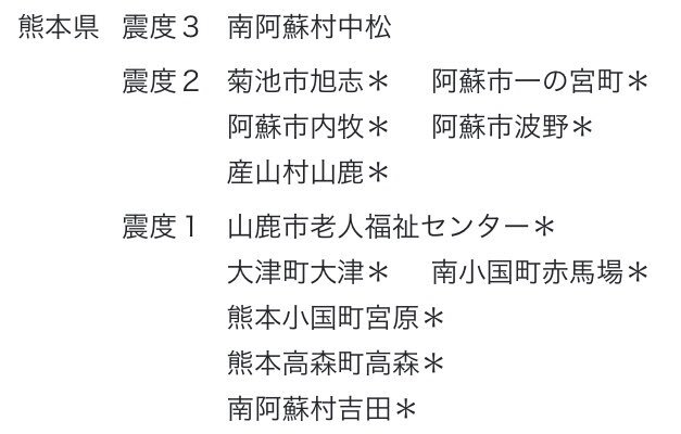 熊本県で最大震度3の地震 25日23:48頃 熊本県阿蘇地方 深さ10km M3.4 熊本県南阿蘇村中松で震度3 同県菊池市旭志,阿蘇市一の宮町,同市内牧,同市波野,産山村山鹿と大分県竹田市荻町で震度2 福岡県で最大震度1 昨夜18:01頃のM5.8/最大震度5強の地震以降、震度1以上の余震は25回目です pic.x.com/tlVEvX2mlC