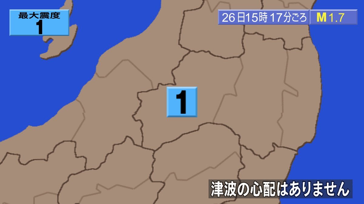 📢 地震情報 日時 : 11月26日(水) 15時17分頃 場所 : 福島県 震源地 : 福島県会津 最大震度 : 1 震源の深さ : 10km マグニチュード : 1.7 市区町村の総人口 : 484人 津波の心配はありません。 pic.x.com/RoGpr5zhGG