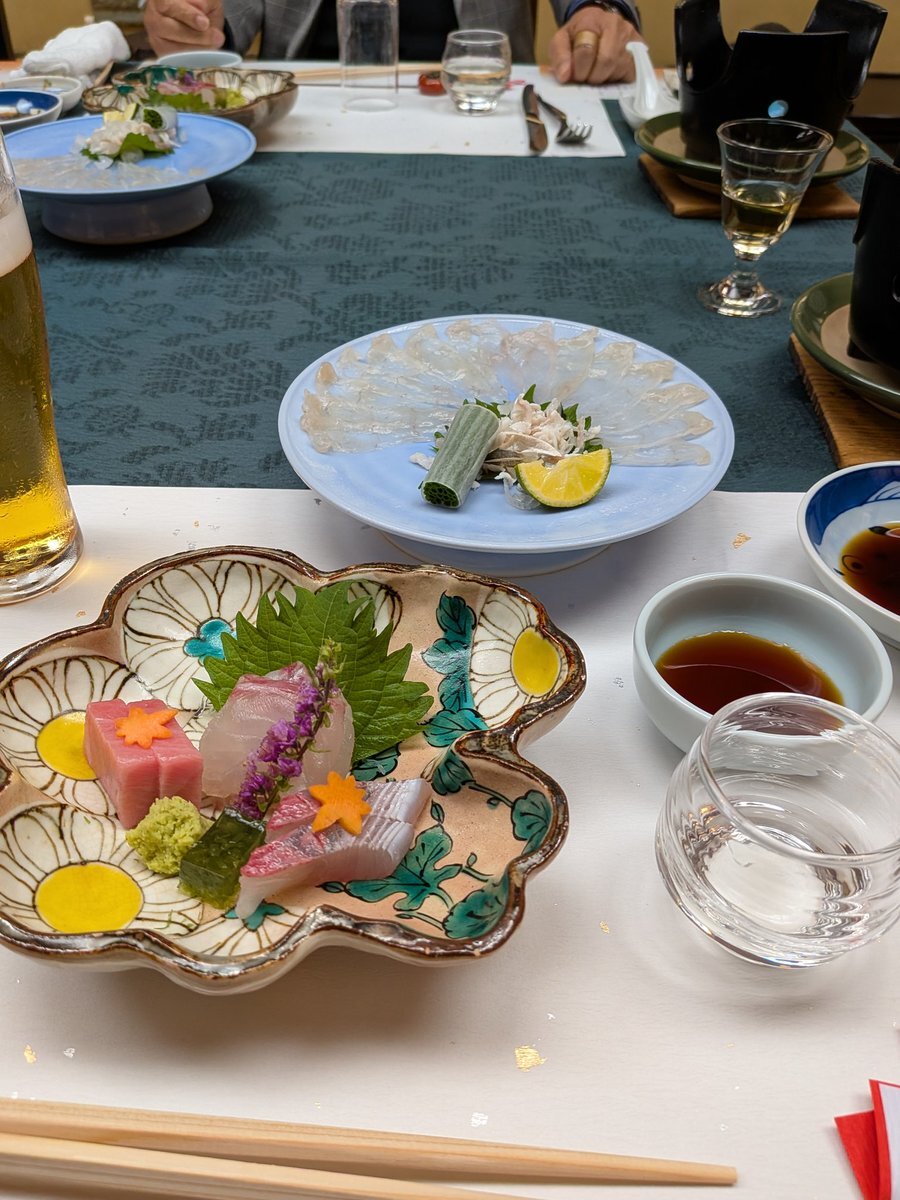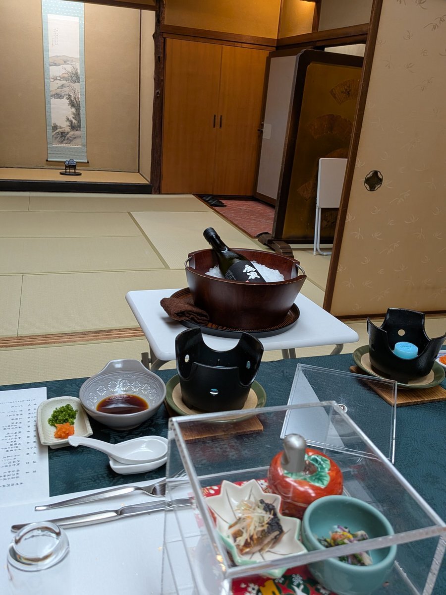 #湯田温泉 #松田屋ホテル 山口滞在中に遠方から妹もかけつけて、両親の金婚式のお祝いができました㊗️ 松田屋ホテルさんは、坂本龍馬や木戸孝允なども訪れた老舗です。 金婚式だけに金雀という銘柄の🍶を用意してくださいました。 お料理全部美味しかった😋 pic.x.com/KNoKQ6Duo8