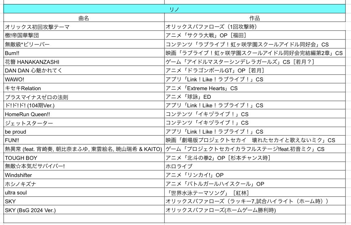 DJリノ、スターティングラインナップ(セトリ) 今回は関西からお呼びいただきありがとうございました! 初の中国地方&山口県でDJ、しかも会場がガチデカイ野球場で色々と興奮が凄かった………! 新視点としてはオタ芸は肩回しが共通点としてあったのでキャッチボールで肩が慣れてた事 #あにちょ