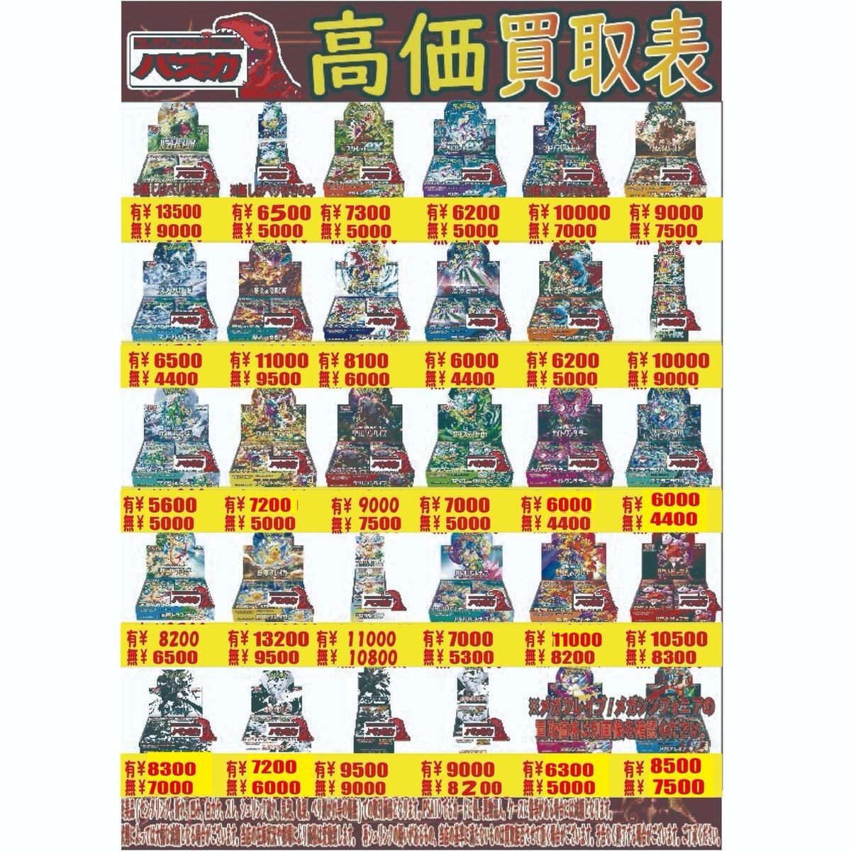 11/29 本日の買取価格]💸 🔥🔥🔥新弾買取🔥🔥🔥 MEGAドリーム/12000円 🔥🔥🔥超買取強化商品🔥🔥🔥 🌟ホワイトフレア/8000円 🌟サイバージャッジ/7000円 🌟ナイトワンダラー/7200円 🌟ステラミラクル/7200円 🌟熱風のアリーナ/12700円 🌟未来の一閃/7300円 🌟ワイルドフォース/8200円