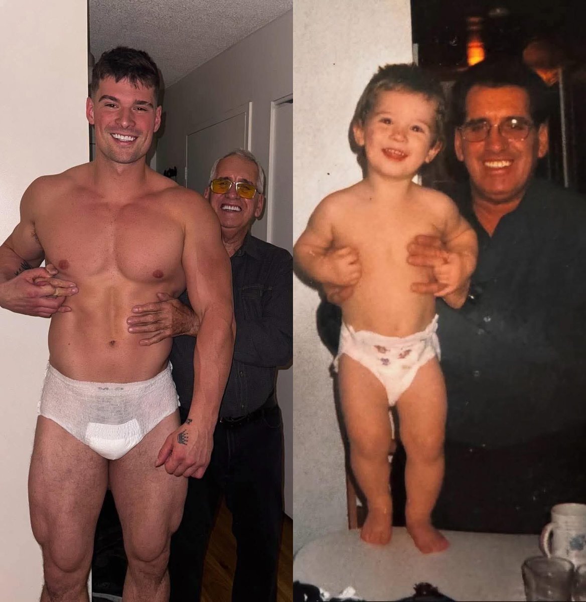 FOFOS! Pai e filho recriam a mesma foto anos depois