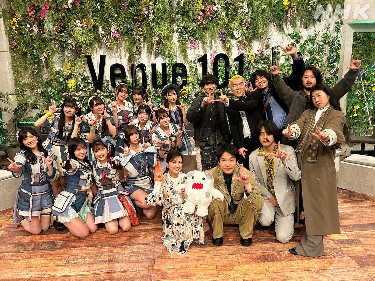 🎫#Venue101 終演🌃 こんやの放送は 見逃し配信で何度でも📱👇 web.nhk/tv/an/venue101… ライブ終わりにスタジオで記念撮影📸 🐅#BalmingTiger/#WashAway 🫂#もさを。/#ぎゅっと。 💫#Liella!/OPEN THE G☆TE!!! 🎙MC #生田絵梨花 #濱家隆一