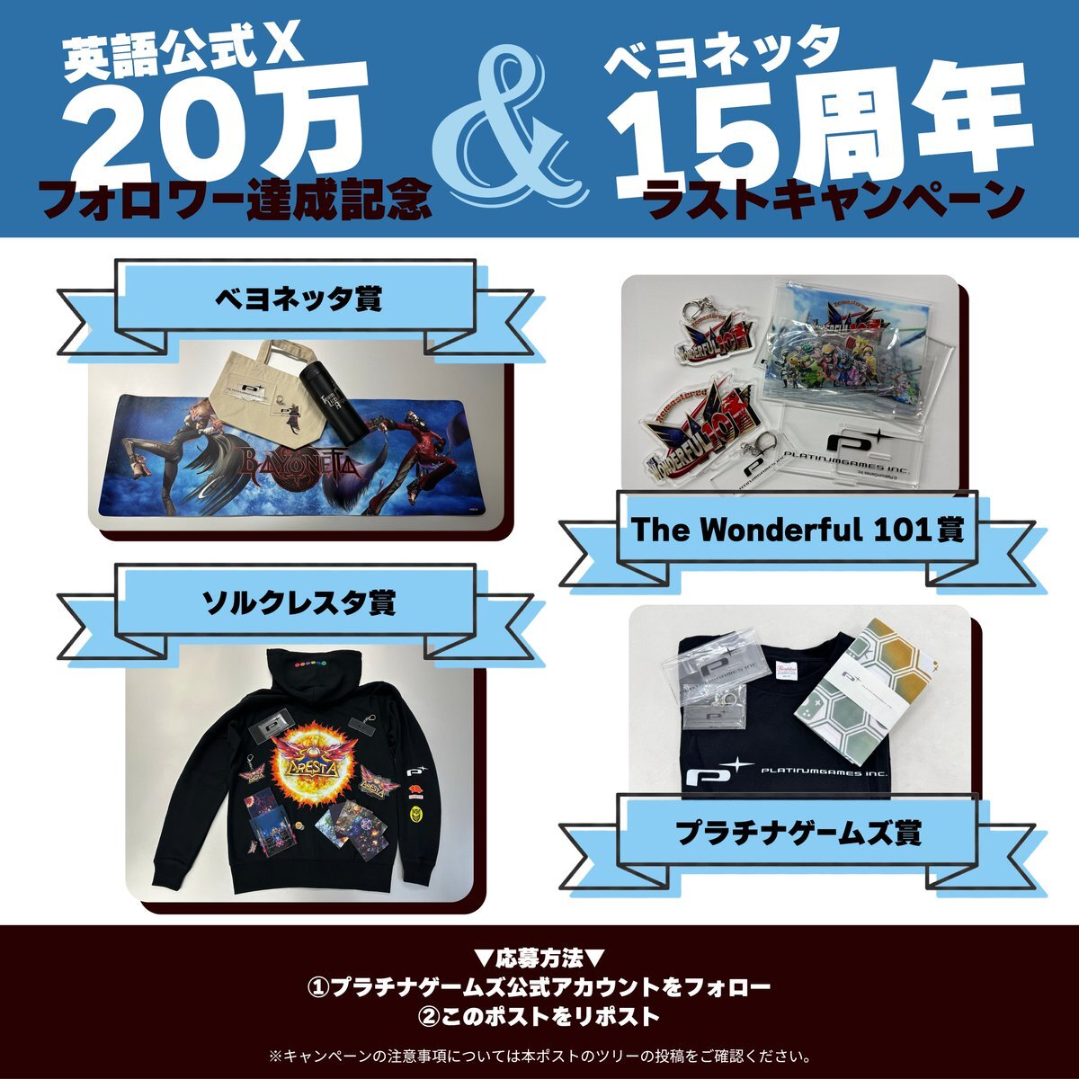 プラチナゲームズ英語公式Xアカウントフォロワー20万人突破記念 & ベヨネッタ15周年ラストキャンペーン開催!🎉 今年一年ベヨネッタ15周年のお祝いイヤーとしてPOP-UPショップやコラボレーションなど、様々な企画をを実施させて頂きました! お楽しみいただけたでしょうか?