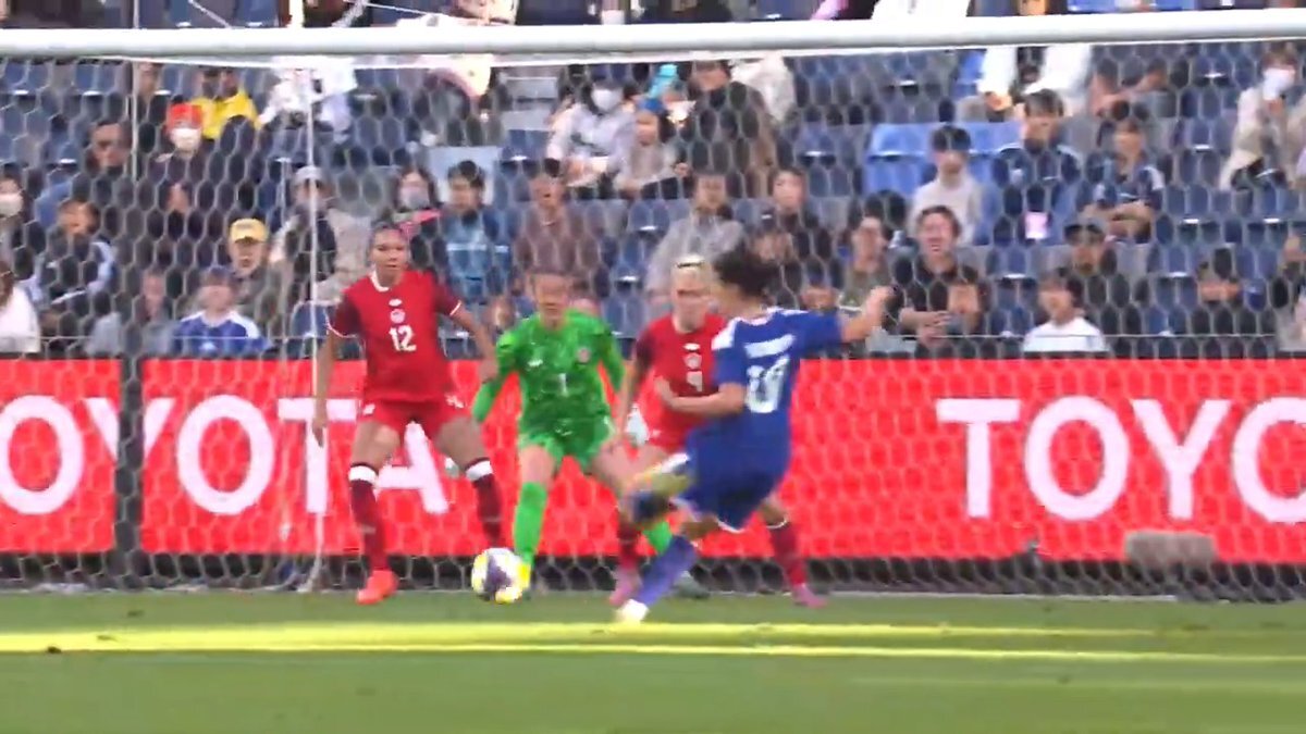 [ハイライト]日本の華麗な連携から… ⚽️MS&ADカップ2025 なでしこジャパン vs カナダ女子代表 / 田中美南、谷川萌々子から受けた 藤野あおばが遠目から強烈なシュートを放つも 惜しくもクロスバーを直撃!! \ ハイライト&注目シーンを ABEMAで"無料"配信中!!
