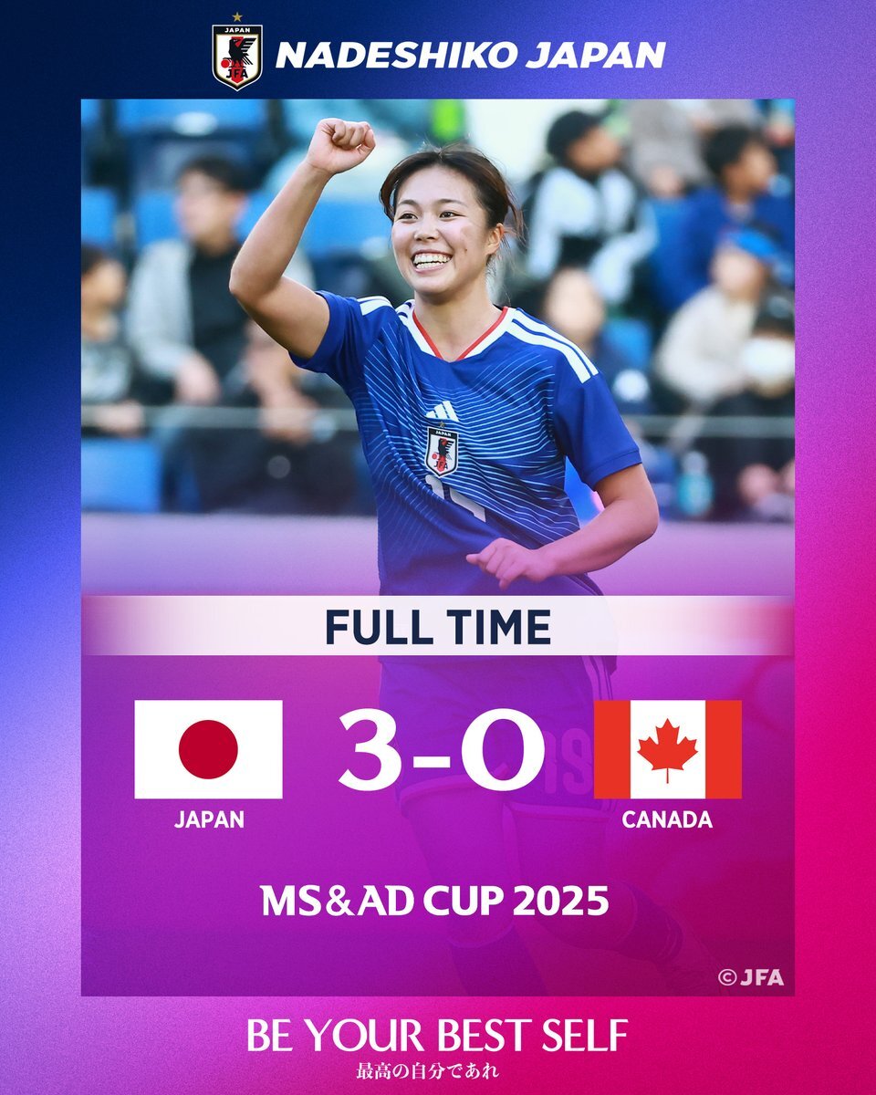 🔹試合終了🔹 🏆MS&ADカップ2025 🇯🇵なでしこジャパン 3-0 カナダ女子代表🇨🇦 ⌚️15:30 📺TBS系列にて全国生中継 📱TVer(tver.jp/live/special/l…) 🔗jfa.jp/nadeshikojapan… #BEYOURBESTSELF #最高の自分であれ #夢への勇気を #なでしこジャパン #jfa #daihyo #nadeshiko #サッカー日本代表