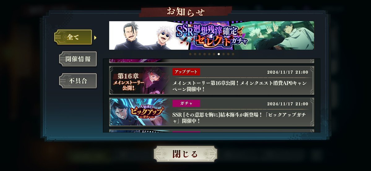 もうマジで呪術廻戦ファンパレのオリジナルストーリーとかを劇場版アニメにして上映してくれ……… 呪獄島のやつとか見たすぎる(12月からプレイ開始ではあるけど福岡分校とかも見たいぜ)