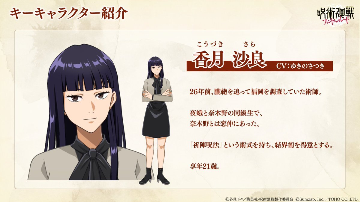 第2回『#ファンパレふぁんみーてぃんぐ放送』配信中📺 現在のコーナー:「メインストーリー 福岡分校編新章情報!」 【キャスト紹介】 香月沙良役 #ゆきのさつき さん ▼番組の視聴はこちら youtube.com/live/QgAu4X4Ru… #ファンパレ #呪術廻戦 pic.x.com/FAs3qmk9o5