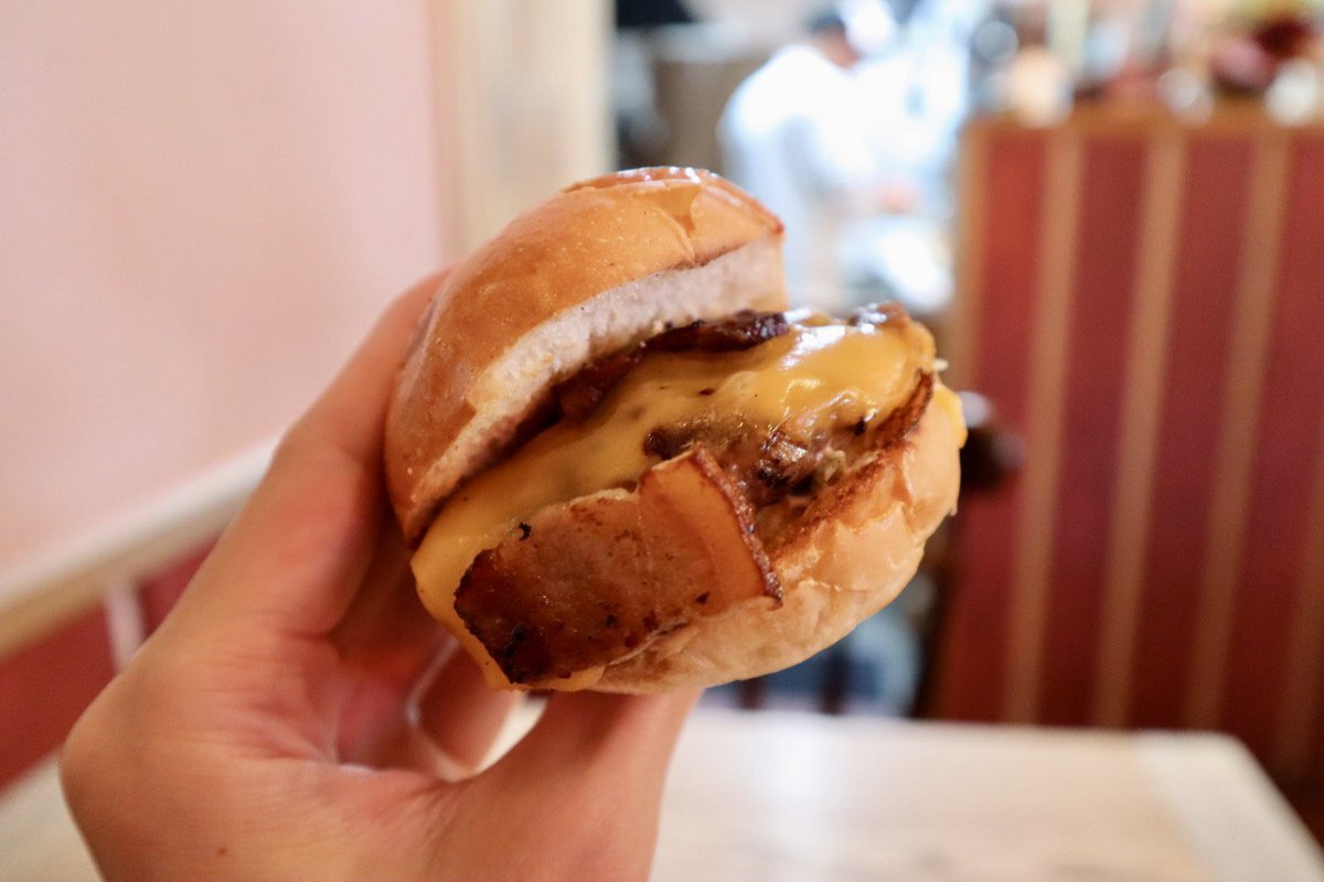 米国大使館公認!古き良きアメリカを想像させる「ミニチュアバーガー」 ジューシーな肉の旨味が弾け、「肉を食べている」と実感しました!濃厚なチーズと特製バンズを合わせた至福のバーガーです 元魚屋と異色の経歴をもつ強面の店主に、「おいしいです」と伝え、笑顔になった瞬間、心が温まりました pic.x.com/ukNRRU87RZ
