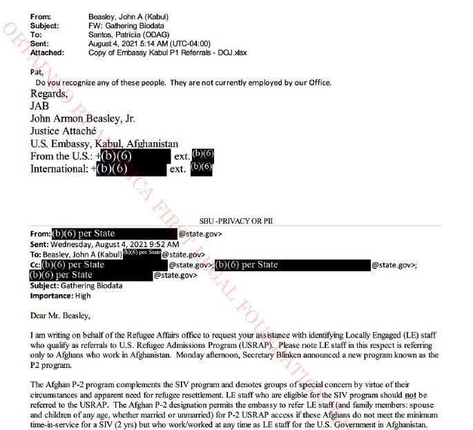 /5 カブールにある米国大使館の司法省アタッシェは、そのリストに記載された名前を一つも認識していないようでした。 x.com/America1stLega…