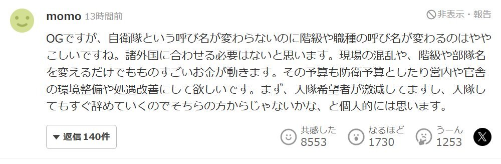 <独自>政府、自衛隊の階級名変更検討 諸外国の軍隊に準拠、1佐→大佐/1尉→大尉 - 産経ニュース sankei.com/article/202511… ↓ ほんとそう。 pic.x.com/tDplkRoph0