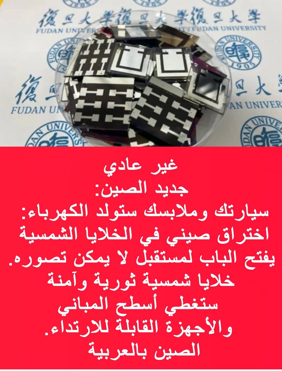 🇨🇳 🔴غير عادي.. بشرى سارة للجميع😇 طور باحثون صينيون خلية شمسية من بيروفسكيت القصدير بكفاءة قياسية بلغت 17.7 بالمئة، وهي الأعلى من نوعها حتى الآن، مع التخلص من المخاطر البيئية والصحية. ومن المتوقع توسيع استخدام هذا الابتكار في المباني المدمجة بالطاقة الشمسية، والأجهزة القابلة