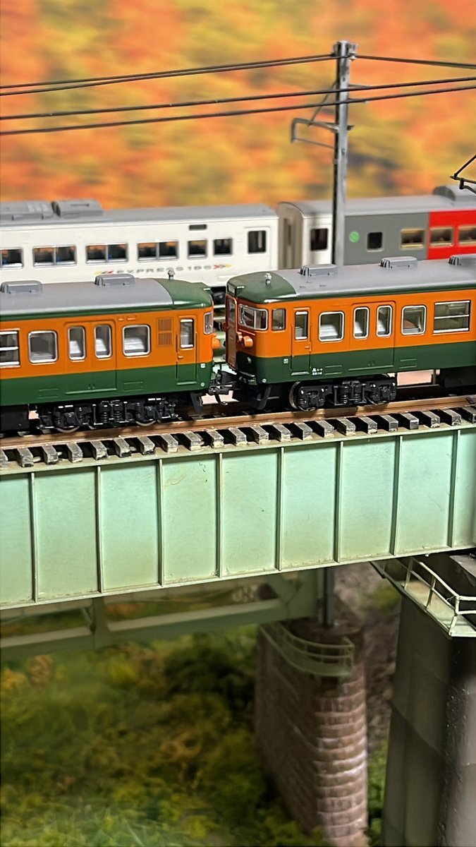 実はこの115系、ジャンク品を購入したんです。車両の屋根にウェザリングがされていましたので、あえて新品のようにグレーに塗り直したという謎工作を実施しています笑 pic.x.com/X2TS4rxw0V
