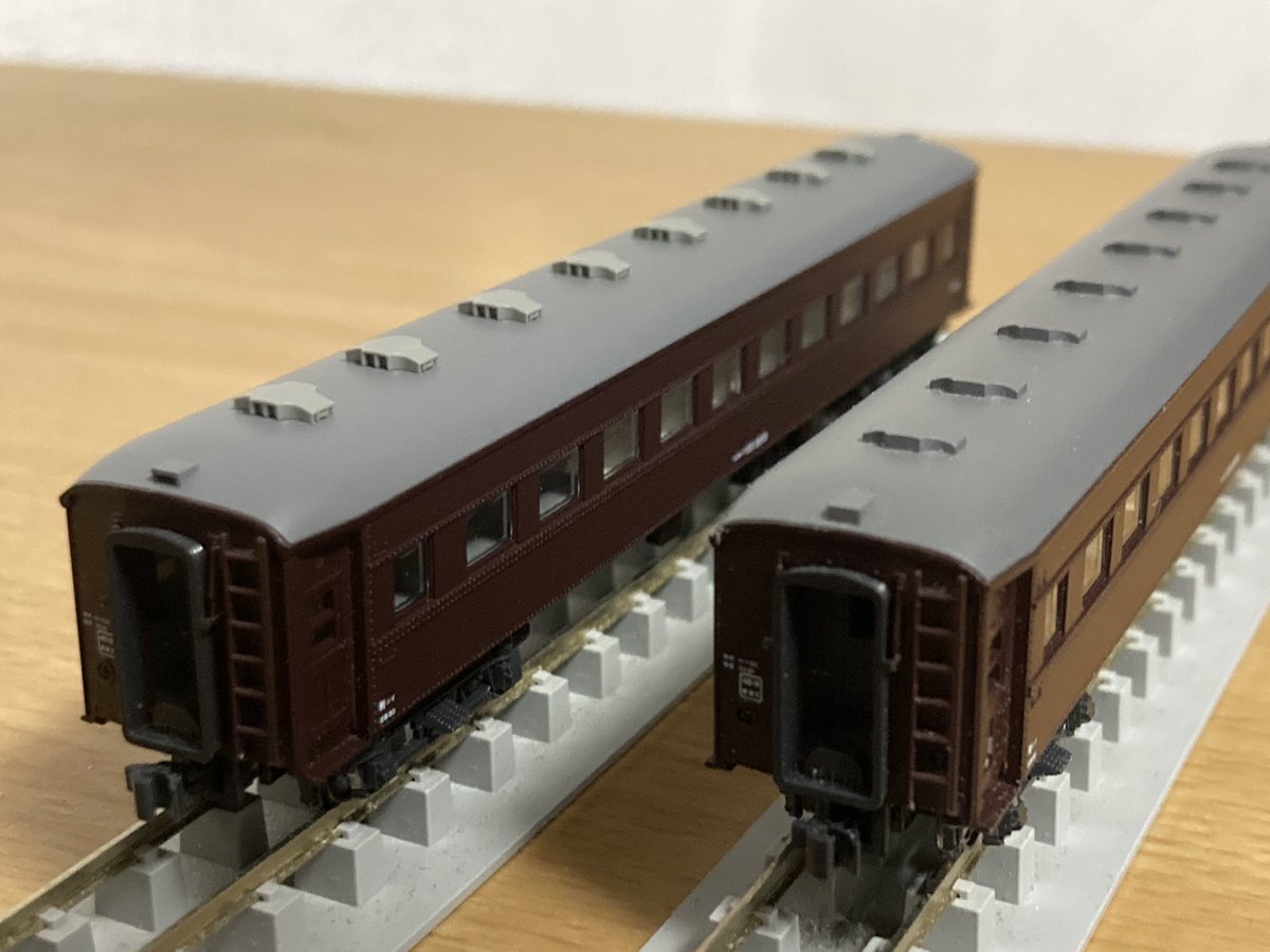 KATOのオハ35/オハフ33グレードアップパーツとナハ10/ナハフ10グレードアップパーツで在籍車両の屋根上を総取り替え。 ナハフ11とナハ11は落ち着いた装いに。 ※同一車両並び画像は取り替え前後の比較で左側が取り替え後。 pic.x.com/KAc0auJX9O