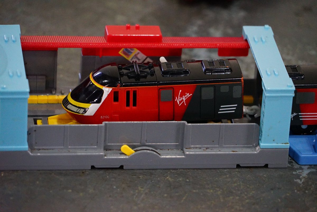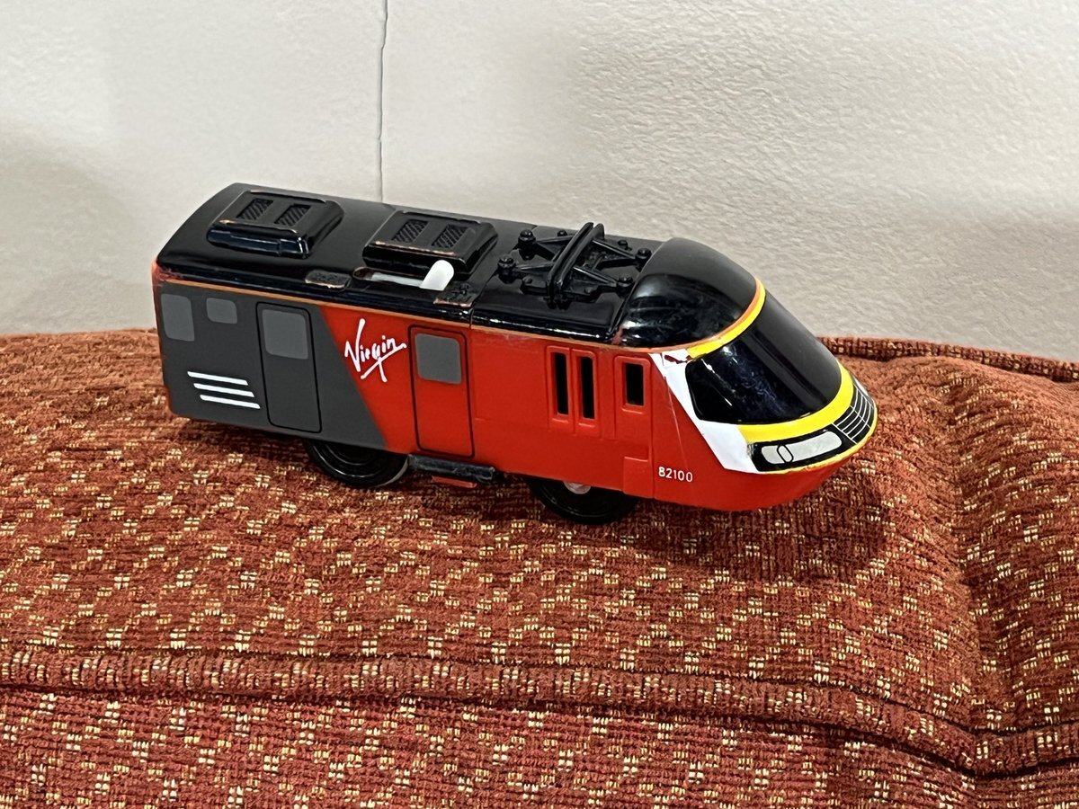 プラレールコーナーに衝撃のヴァージンHSTを発見!! 近鉄アーバンライナーの金型を流用してるので、先頭車両の屋根にパンタグラフが載ってる問題作(?)です。 まさか本当にお目にかかれるとは思わなかった。 プラレールで遊んでる小さい子に混じって「ちょっとごめんね~」と拝借して細部を見てきた。 pic.x.com/bDNRyKkork