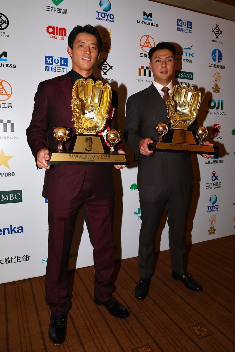 【楽天】27日、三井ゴールデン・グラブ賞を受賞した辰己涼介選手と村林一輝選手。(撮影・福島範和)sanspo.com rakuteneagles.jp #辰己涼介 #村林一輝 pic.x.com/6HEOha0SOI