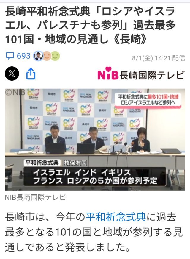 長崎平和祈念式典 台湾は「NGO席」 駐日代表「中国の圧力」、市「大使から順に配置」 sankei.com/article/202508… @Sankei_newsから