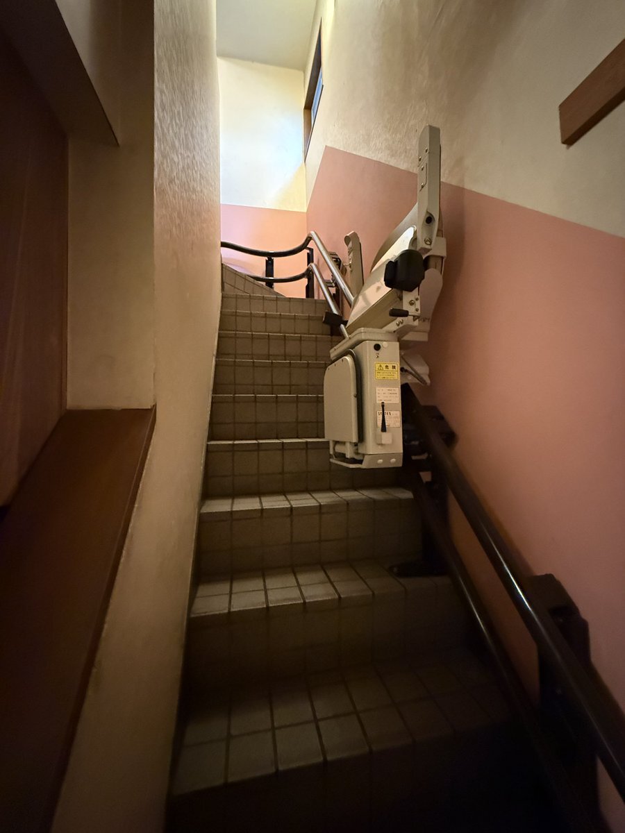 返信先:@tamaki19Kステアリフト。介護施設とかにもあるやつ。 ググったら階段昇降機って書いてあったから。