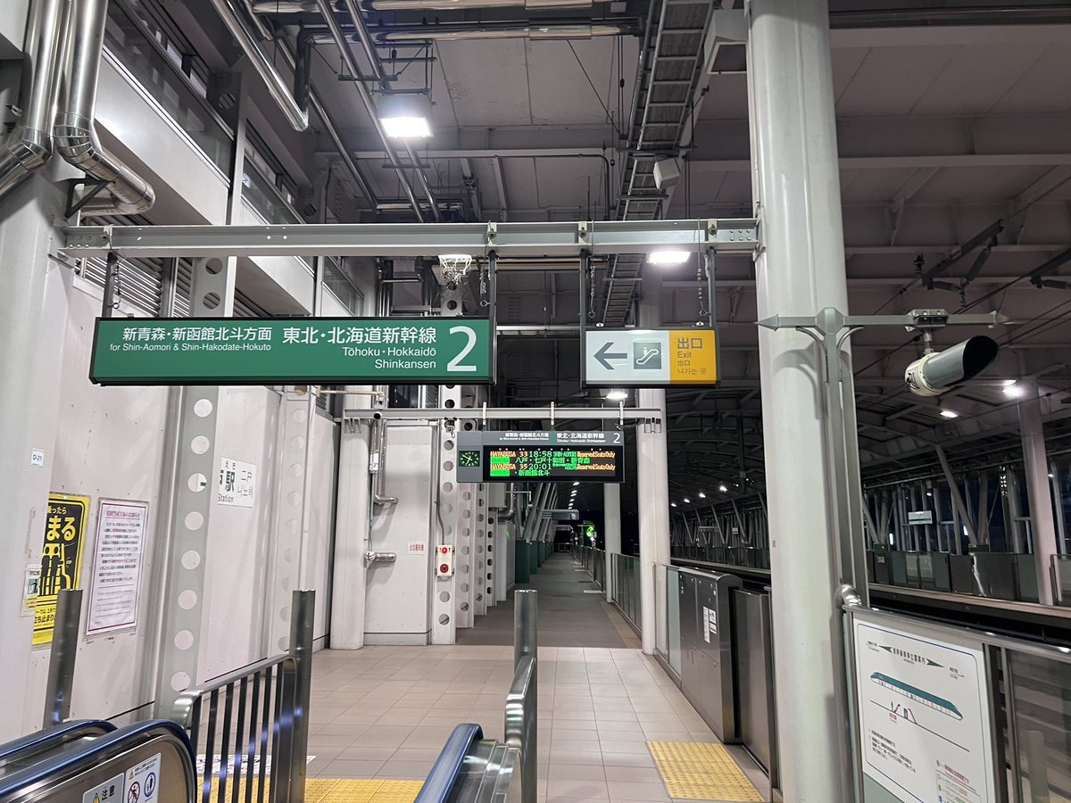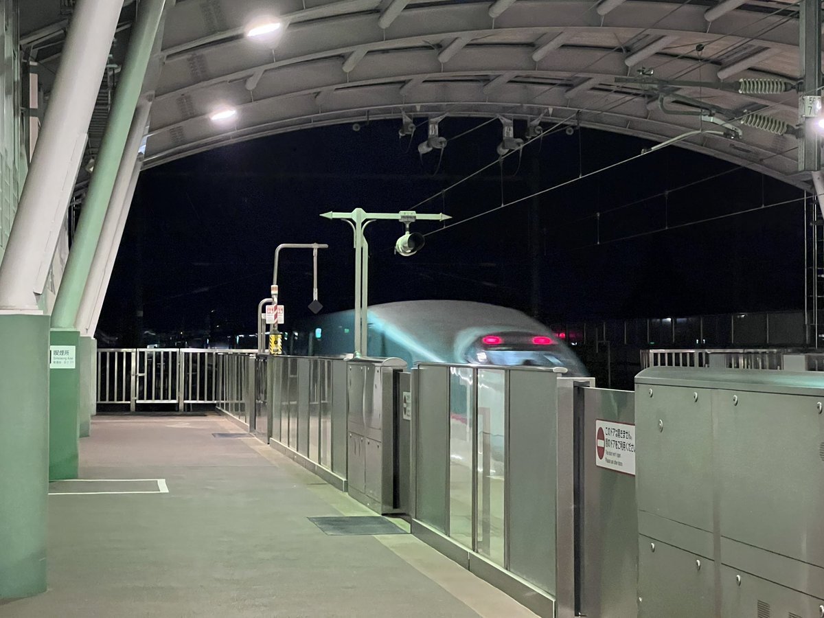 二戸駅②番線・18:22着→22発 はやぶさ31号・新青森行き⑩両 ・ 到着→18:21:32 30秒(2.9c) ・ 改札階→ホームへ降りる階段の 途中にある [RAMSA]スピーカーが1番安全な印象 ・ ⚠️ホーム上にある全てのスピーカーは3mほどの高さに設置されています ・ pic.x.com/Mc0OxWxvTx