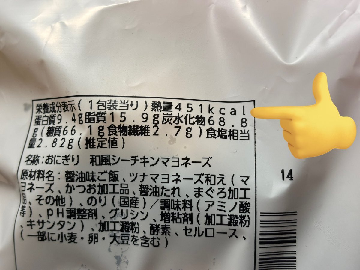 おれ詳しくないんだけど、おにぎり一個で451kcalって非常事態宣言が必要じゃない? pic.x.com/pmmJoF9oO4
