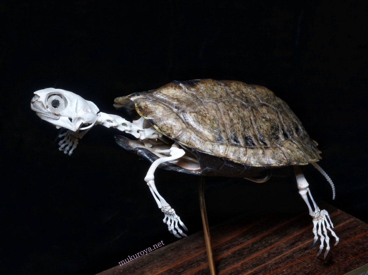ニホンイシガメ 骨格標本 Mauremys japonica 甲長7cmほど プカーッと浮いているようなポージングです。 改めて見るとニホンイシガメって四肢が長いんですね。 甲羅が渋くてかっこいい! ありがとうございました! pic.x.com/rWcRB8qhGp