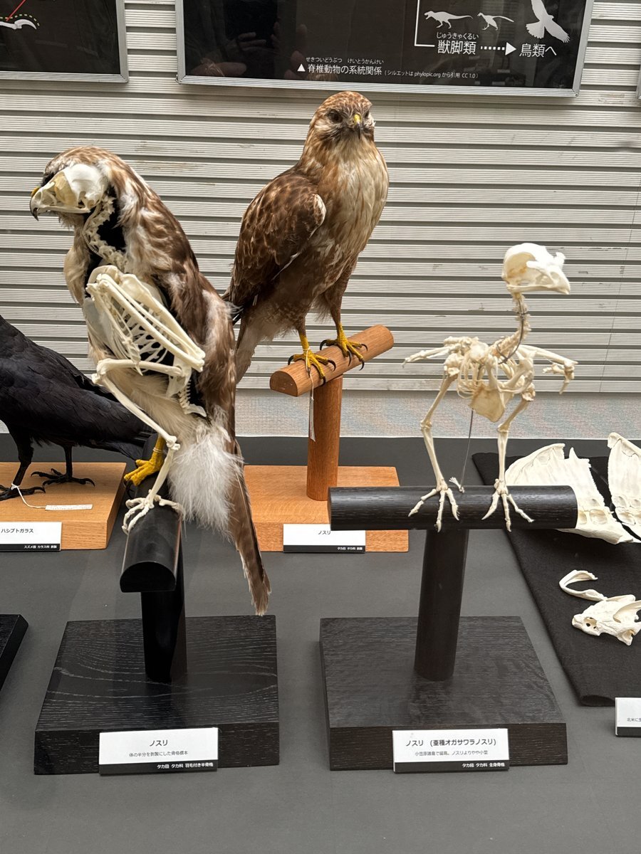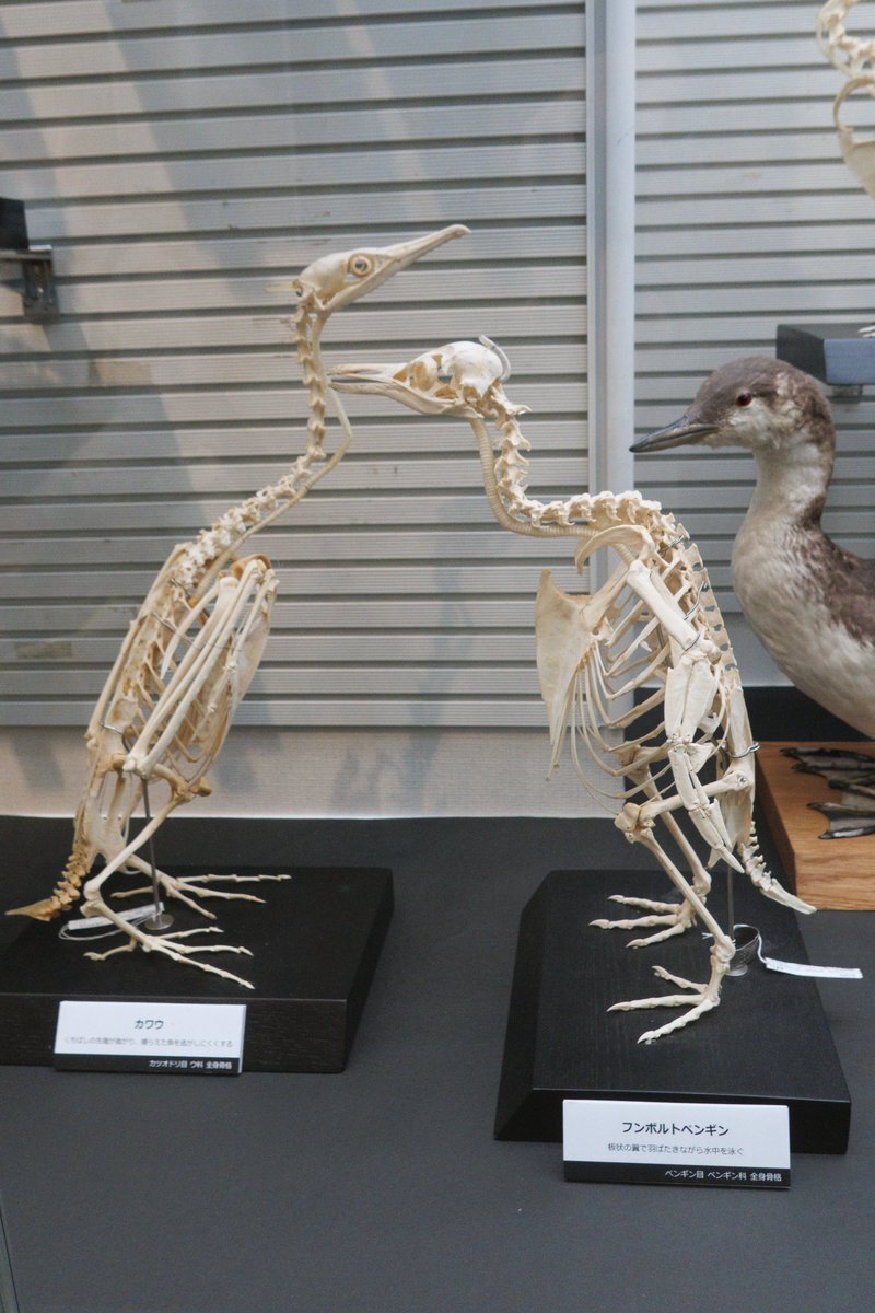 第94回企画展「とりホネ展-骨からわかる鳥の進化と多様性-」 2025年7月12日(土)~11月24日(月・祝) 我孫子市鳥の博物館 city.abiko.chiba.jp/bird-mus/info1… 多数の標本と解説パネルで情報量の多い展示。剥製と骨格標本が並べられていたり、鵜とペンギンなど形や習性が近いものが並べられていたり。 pic.x.com/uwvpUIT7TM