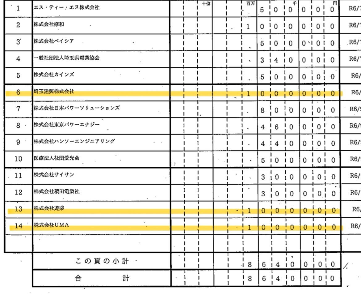 大野知事の「彩裕会」R6収支報告書のニューカマーで気になったのは、株式会社遊楽(パチンコホール運営)と株式会社UMA(知事と同じ慶應卒の不動産マーケティング)です。 埼玉建興と同様に、政治資金パーティで100万円の高額献金。 特にマーケティング系の企業は、渋沢MIX関連の補助金を注視したい。 pic.x.com/jKHe546OtD x.com/cat_go_to_the/…