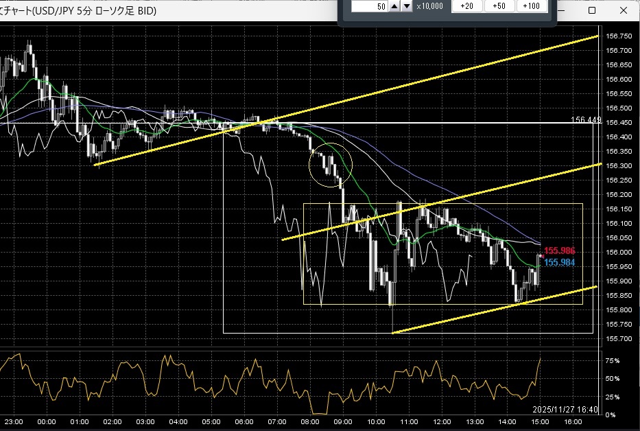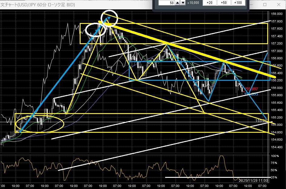 📌 先週のドル円まとめ ・感謝祭で動意薄156円前半は鉄板の押し目帯-金利下げ渋り157円台を何度も試す展開-実需の買いと戻り売りが拮抗し“レンジ戦”の1週間 📌 来週・月曜からの展望 ・米指標再開でボラ復活,まずは157円台再トライ-157.50突破なら上方向が軽くなる-下は156.20が依然強く押し目買い優位