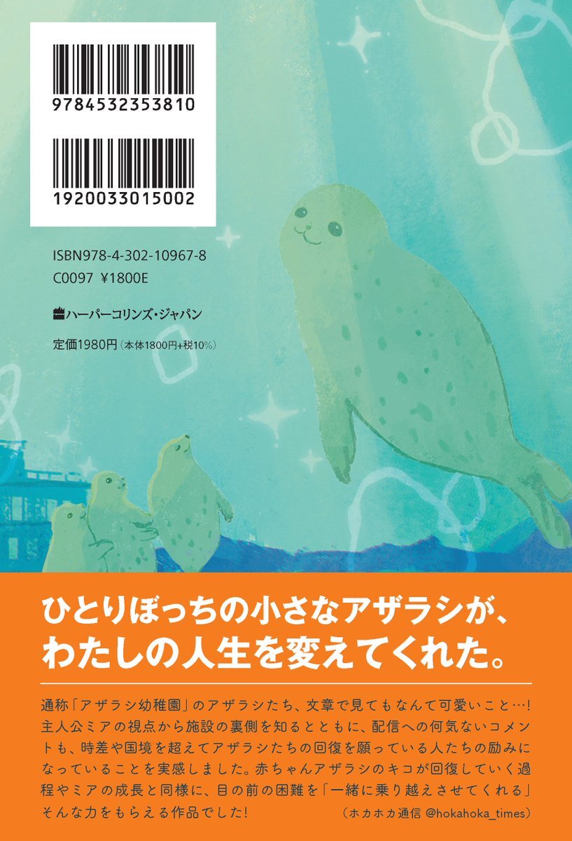 カバー表4(裏面)がこちら。 帯には、この小説『アザラシと海の約束』が生まれるきっかけをつくってくれたXの投稿のポスト主、ホカホカ通信さん/@hokahoka_times のコメントを掲載しています。 12/22(月)の発売日まであと30日📢