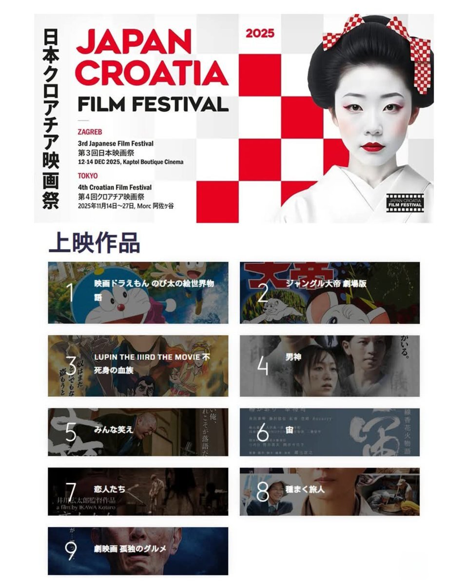 日本クロアチア映画祭2025🇭🇷にて『宙』がノミネートしたんです✨ japancroatiasociety.org/filmfestival/j… 映画ドラえもん のび太の絵世界物語 ジャングル大帝 劇場版 LUPIN THE IIIRD THE MOVIE 不死身の血族 男神 みんな笑え 宙 恋人たち 劇映画 孤独のグルメ 種まく旅人 〜醪のささやき〜 すごい作品と並んで😳💦 pic.x.com/UL3bhh2kaG