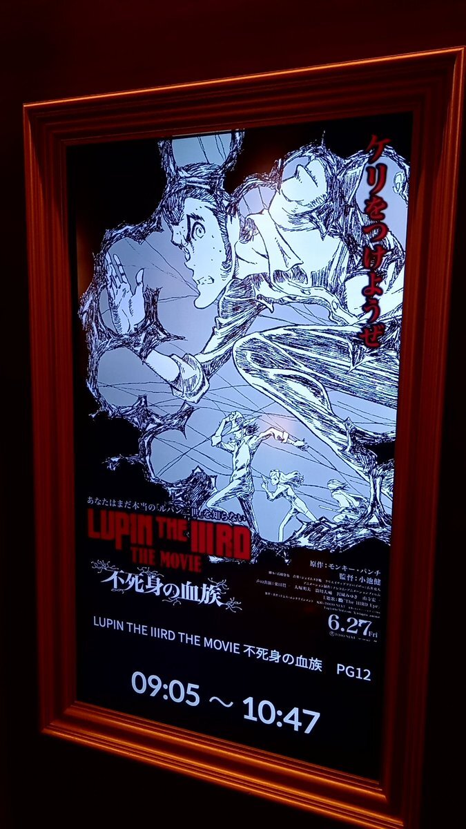 映画『LUPIN THE ⅢRD THE MOVIE 不死身の血族』 池袋で鑑賞。入場特典貰えた。 当初はFLEXOUNDで観る予定だったが、UCMMもお台場も上映無いので、RGBレーザーのグラシネへ。 隣のスクリーンが4DXシアターだからか、座席に振動の余波が来てた。内容は普通。映画館でB'zの曲聴けて最高。 #ルパン三世 pic.x.com/i9I1AM6DaF