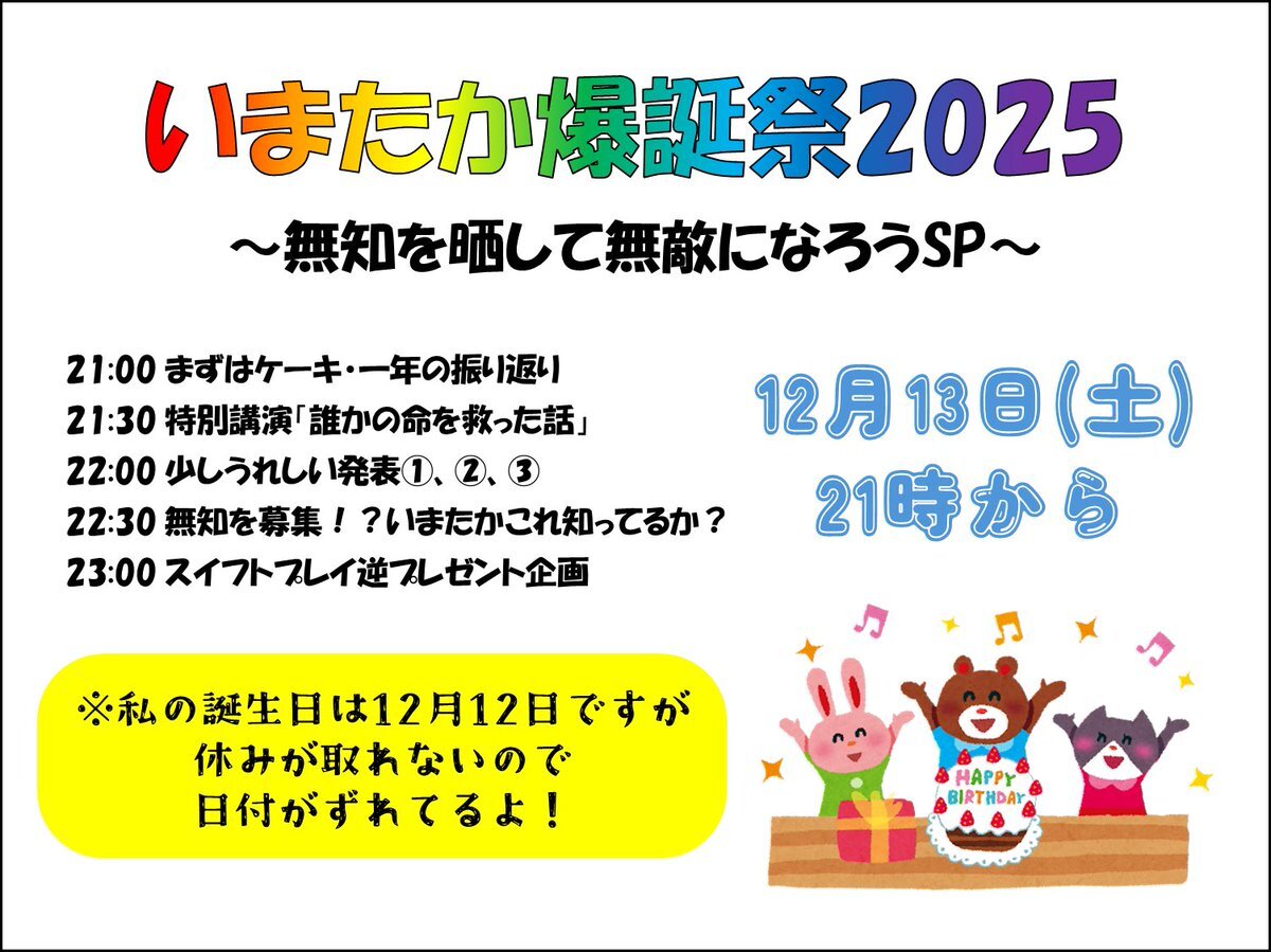 みなさーん 今年もいまたか爆誕祭の日が近づいて来ましたよー ということで今回はこんな企画を用意してみました ぜひみなさんご協力お願いしまーす🙇 marshmallow-qa.com/35lkhd97kcxidl…